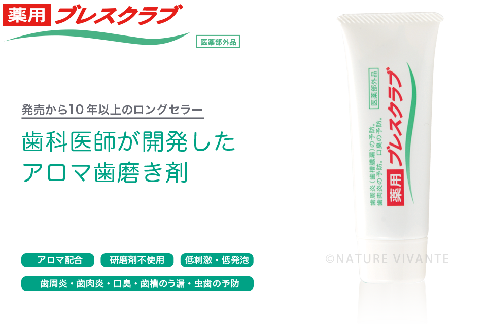 2003年、アロマ歯磨き粉「薬用ブレスクラブ」を開発し、全国の歯科医院にて発売中。